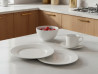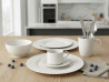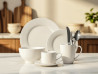 Seti përfshin pjata për vaktet kryesore, pjata për meze, tasa për supa ose drithëra, si dhe filxhanë dhe gota për çdo preferencë pijeje – nga kafeja dhe çaji deri tek qumështi apo çokollata e ngrohtë. Dizajni i pastër klasik përshtatet me çdo stil tavoline – minimalist, modern apo tradicional – duke e bërë këtë set një zgjedhje të shkëlqyer për çdo kuzhinë.